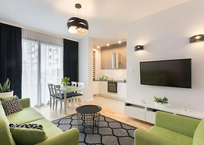 Millennium Awangarda Green apartment offers self-catering amenities, such as a fully equipped kitchen, and an outdoor dining area for guests' convenience. The nearest airport is Warsaw Frederic Chopin, 5 km away, while a train station is close to Millennium Awangarda Green apartment.